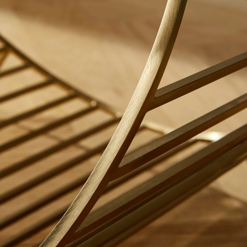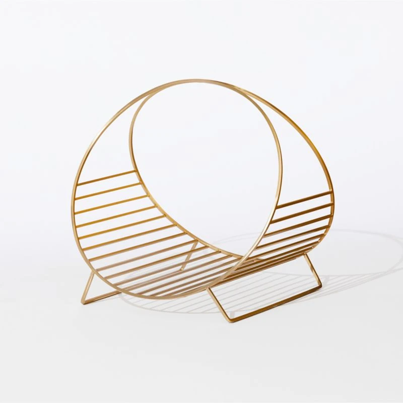 Antique brass-finished log holder adds flare as fireplace sidekick. Vintage styling offers instant warmth with or without a fire. Pairs nicely with our antique brass fireplace screen. CB2 exclusive.