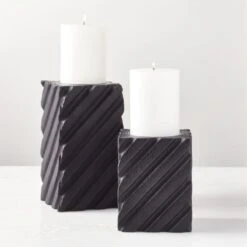 Zeke Blackened Teak Pillar Candle Holder Small