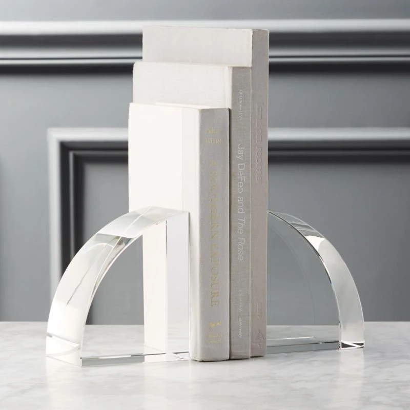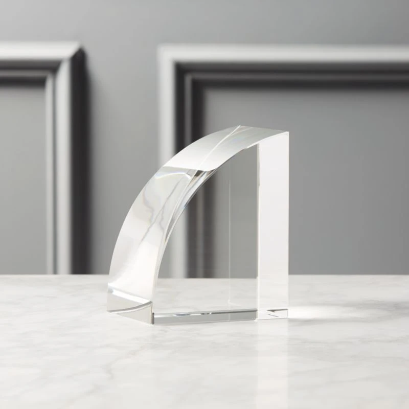 Curved crystal bookend offers support that almost goes unnoticed. As versatile and timeless as a decorative accessory can get. CB2 exclusive.