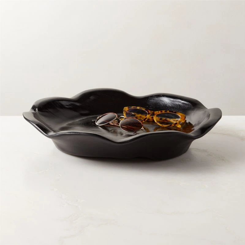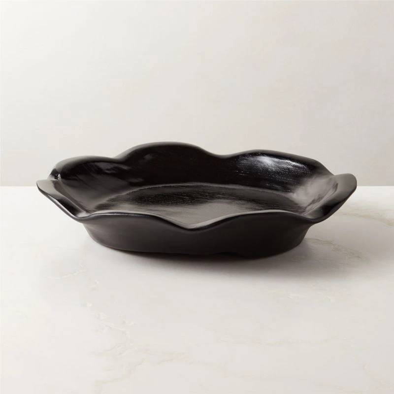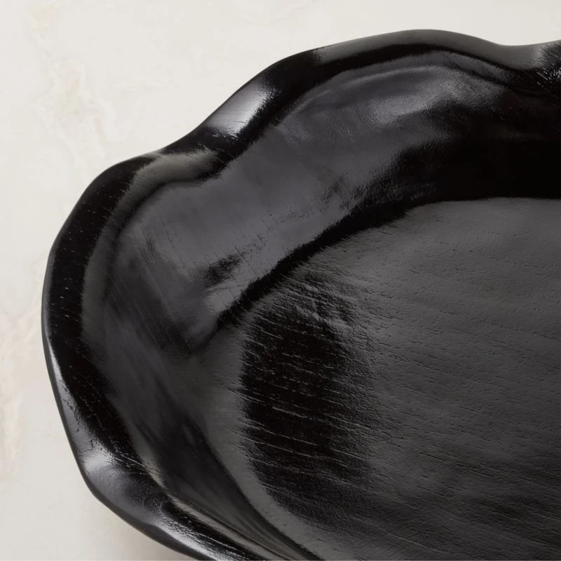 Crafted from Indonesian teak root, decorative bowl has scalloped edges and an unexpected twist: a high-gloss lacquer that highlights the beauty of the wood grain. Due to the natural properties of teak, each piece will be unique. CB2 exclusive.